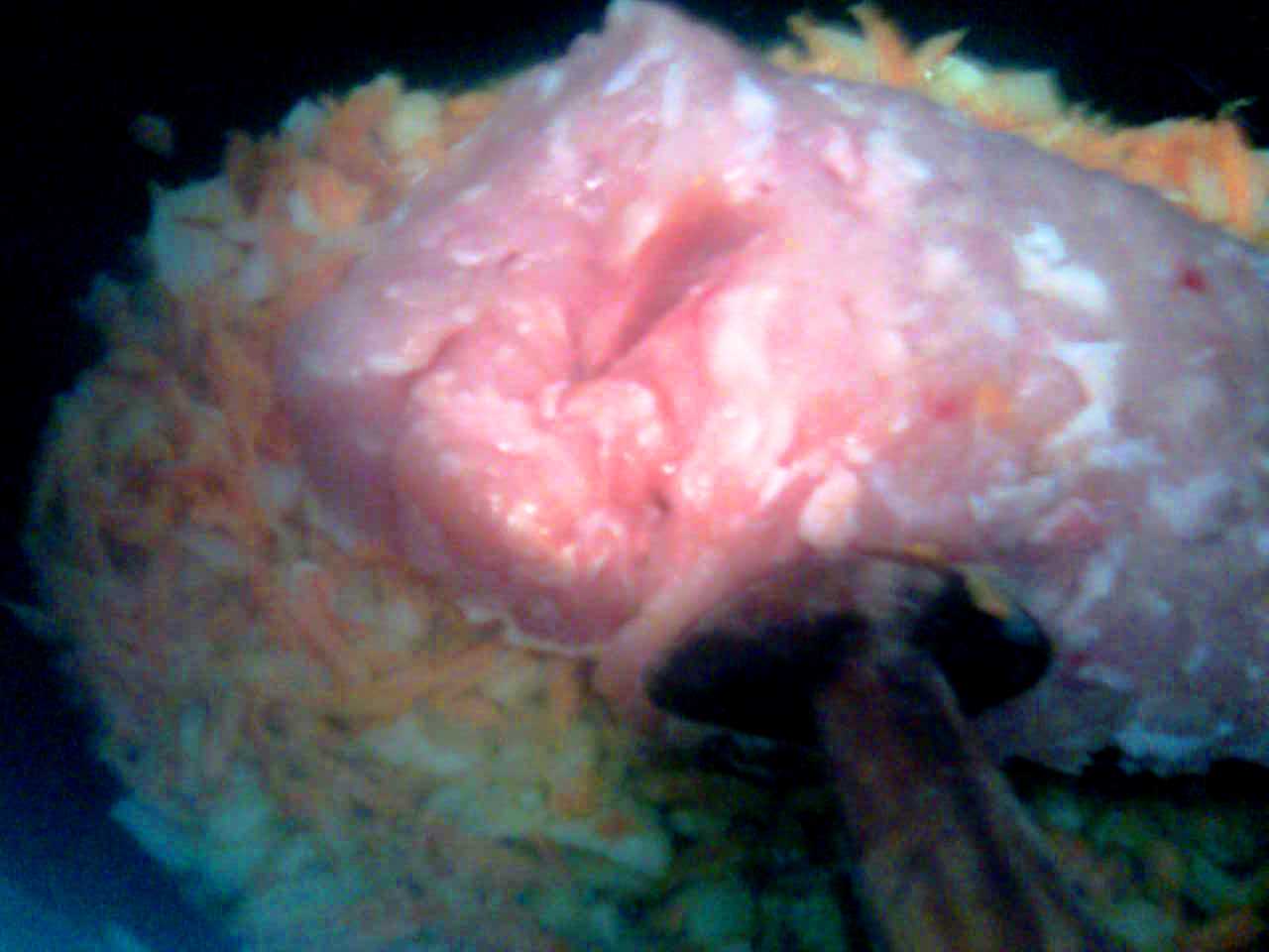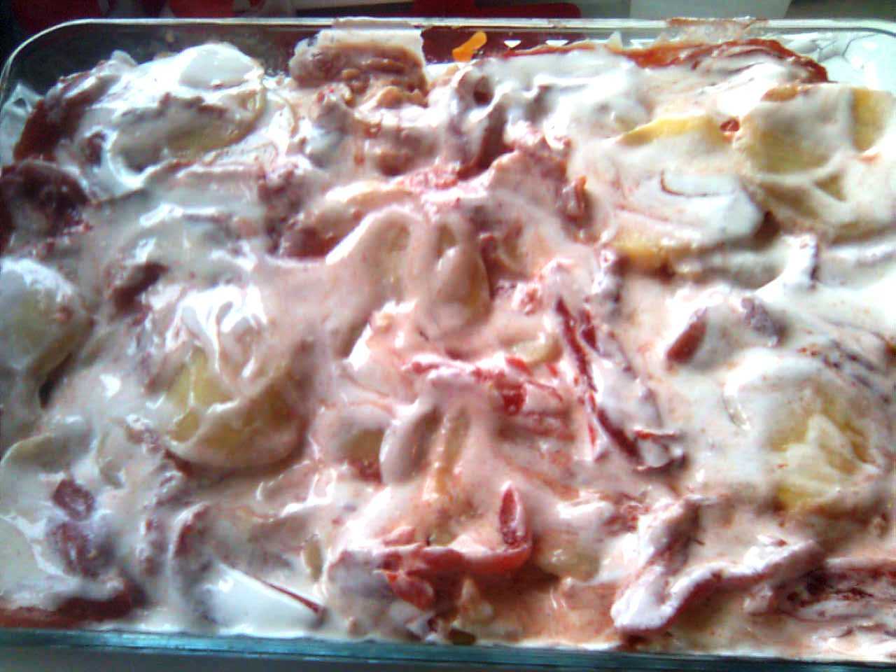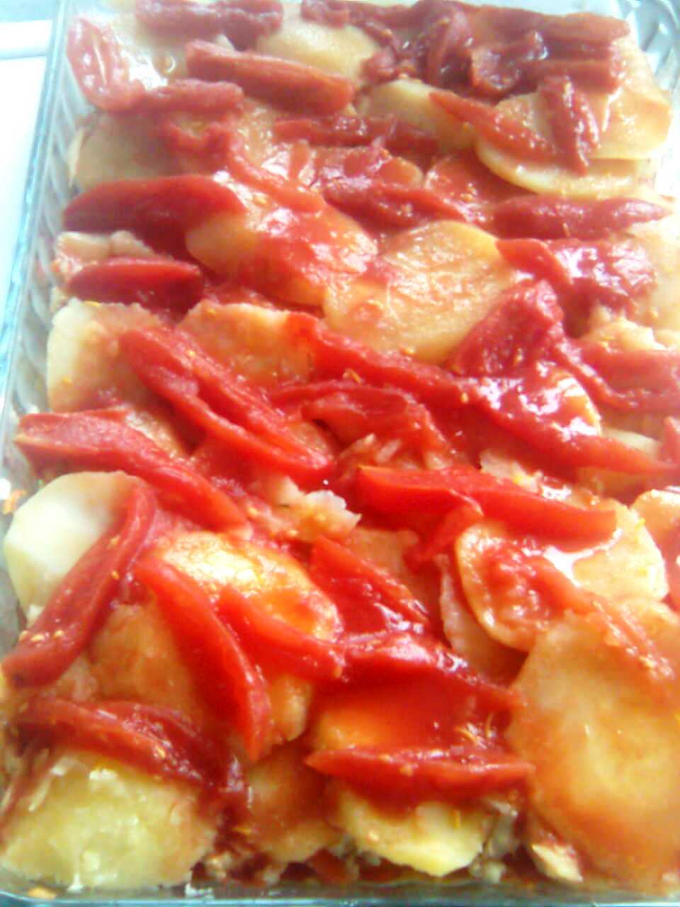 Scoate rosiile din conserva,taie-le cum doresti si aseaza-le peste cartofi,