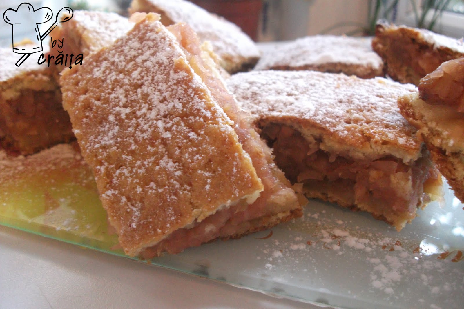 For the english version,please scroll down!Dacă tot este sezonul merelor,m-am gîndit sa profit din plin de ele,asa ca am rugat-o pe mama sa-mi cumpere multe,multe,iar ea mi-a cumparat un sac.Am făcut prăjitură asta(foile sunt bune,bune,aromate si fragede),iar maine o sa fac o placinta cu foi cumparate.Între timp o sa mă gandesc ce sa mai pregătesc,m-ar bate gîndul sa fac "american pie",dar parcă ne ajung atîtea plăcinte...dar,mai vedem!