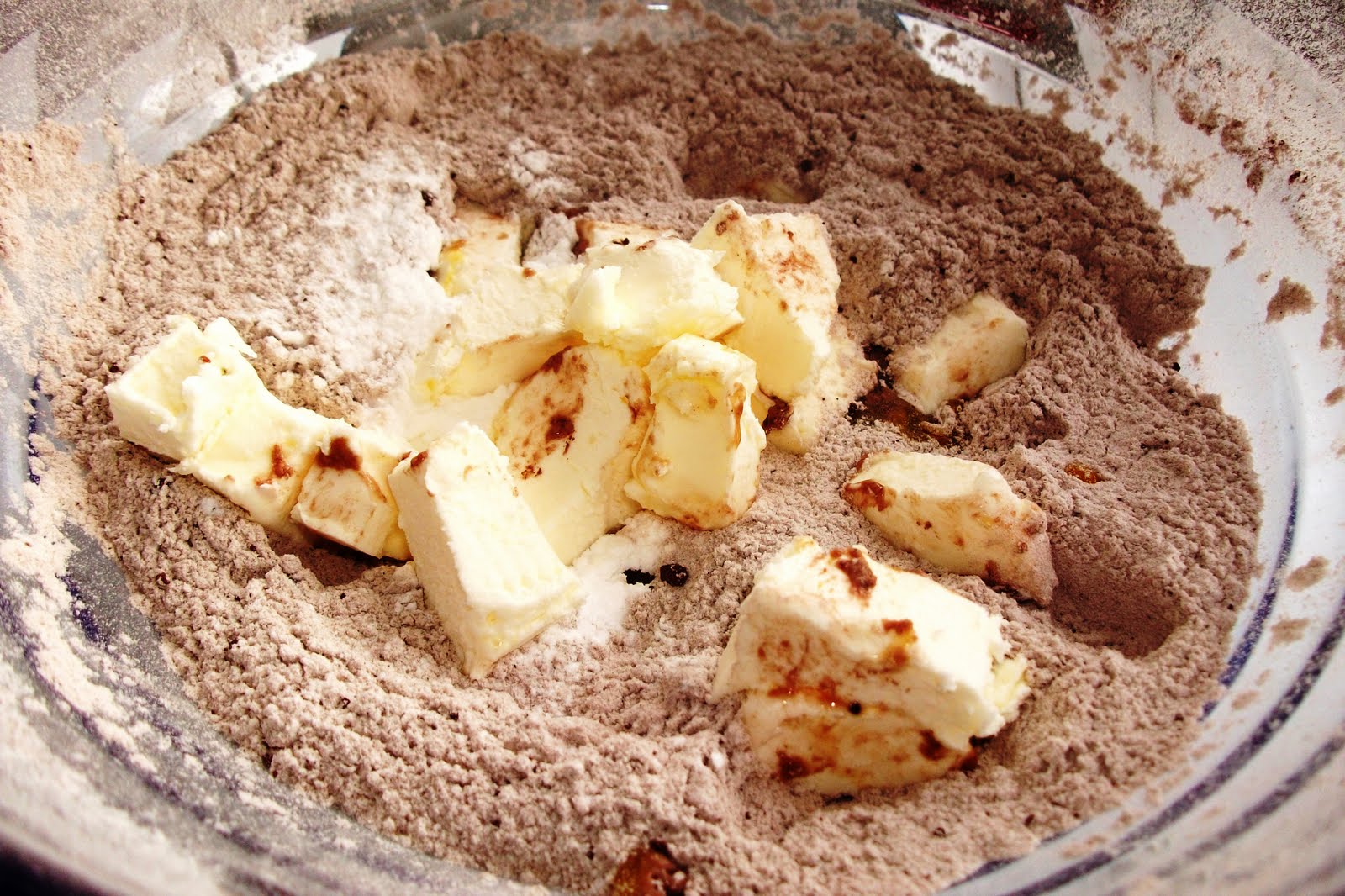 Pui intr-un castron pentru inceput,o cana si jumatate faina si cacaoa.Amesteci bine,adaugi untul taiat cubulete,zaharul pudra,oul